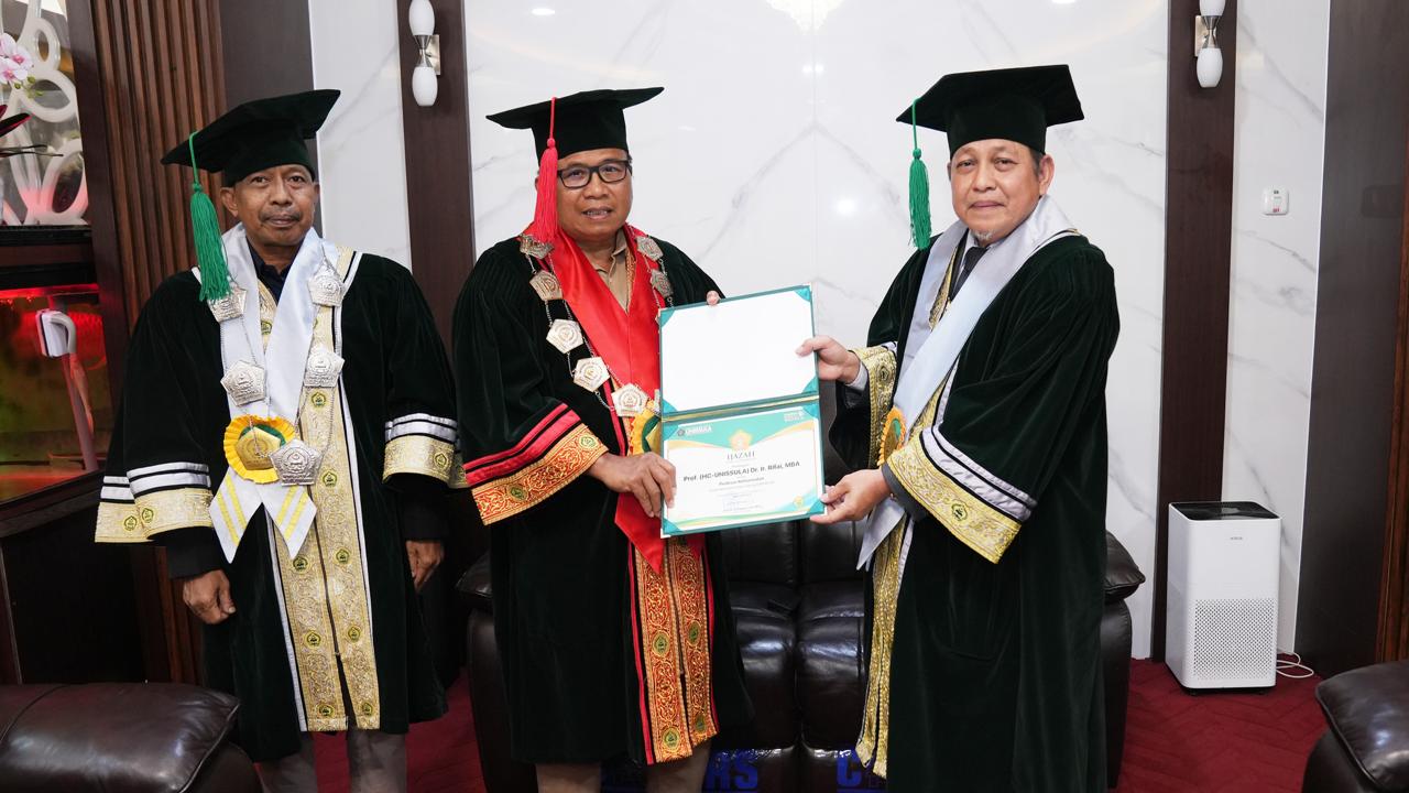 Dr Ir Rifai menerima surat keputusan sebagai guru besar kehormatan (HC) dari Program Doktor Ilmu Manajemen (PDIM) Fakultas Ekonomi dan Bisnis (FEB) Unissula. SK diserahkan langsung oleh Rektor Unissula, Prof Dr Gunarto SH MH di kampus Unissula Semarang, pada Senin (14/4/2026).