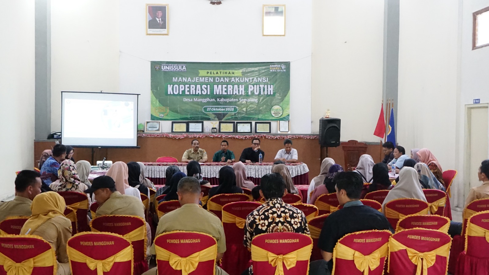 Fakultas Ekonomi dan Bisnis (FEB) Unissula kembali menunjukkan komitmennya dalam pemberdayaan masyarakat. Salah satunya melalui kegiatan pelatihan manajemen dan akuntansi bertema Koperasi Merah Putih. Kegiatan diselenggarakan di Desa Manggihan, Kecamatan Getasan, Kabupaten Semarang dan Desa Banyubiru, Kecamatan Banyubiru, Kabupaten Semarang.