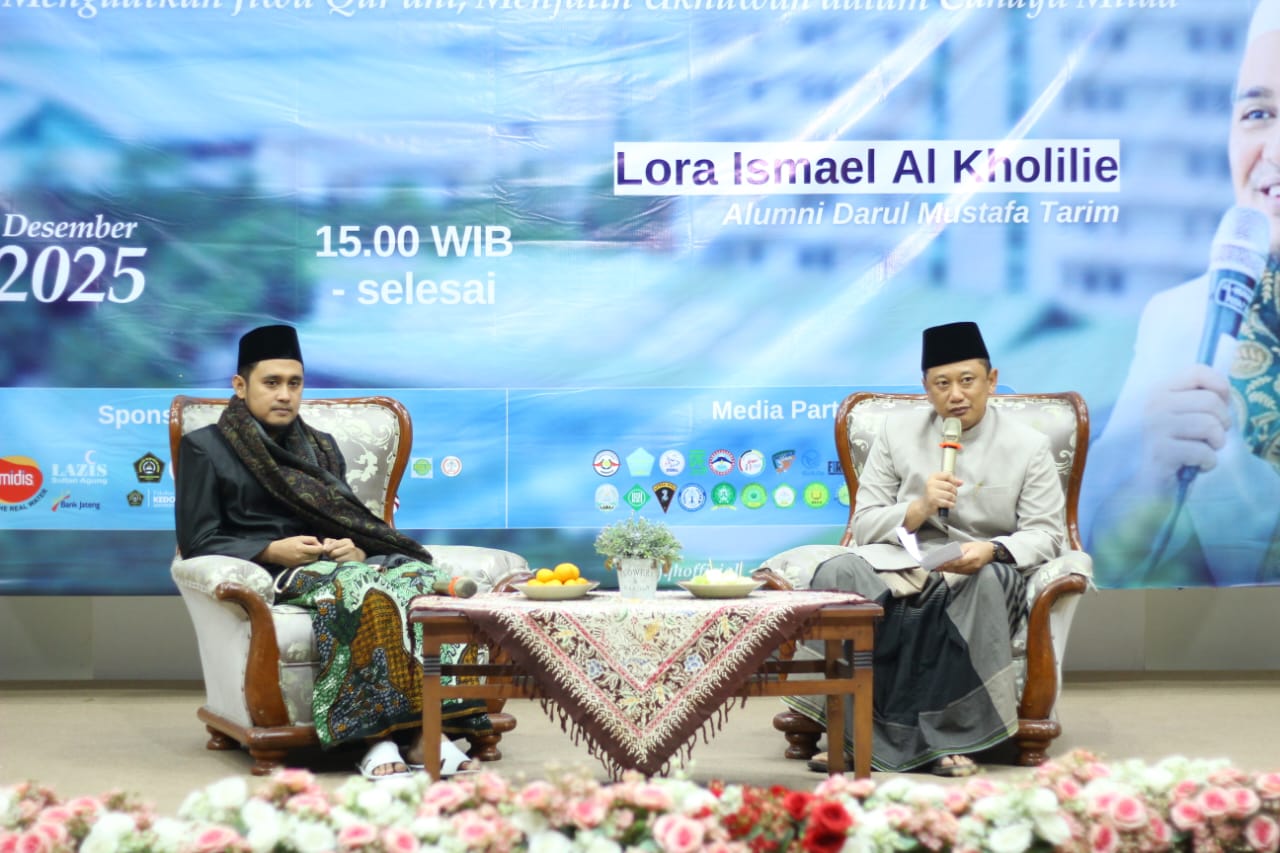 Acara berlangsung di Aula Fakultas Ekonomi dan Bisnis Unissula pada Minggu (7/12/2025) dan menghadirkan Lora Ismael Al Kholilie, alumni Darul Musthafa Tarim, sebagai narasumber utama.