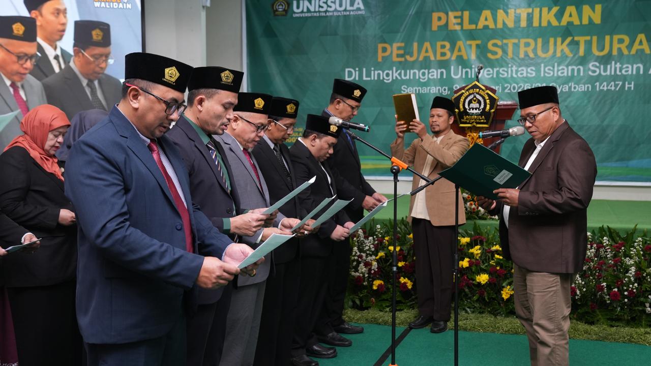 Rektor Universitas Islam Sultan Agung (Unissula) Semarang, Prof. Dr. Gunarto, SH, MH, melantik 11 pejabat struktural baru di lingkungan Unissula, Senin (9/2/2026).