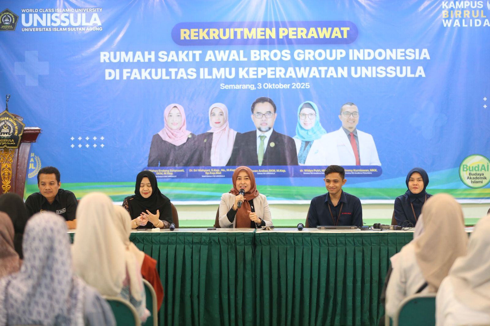 Dekan FIK Unissula, Dr Iwan Ardian SKM MKep mengatakan, bertempat di Aula Gedung Kuliah Bersama Unissula, dilaksanakan kegiatan rekruitmen Perawat Ners FIK Unissula untuk penempatan Rumah Sakit Awal Bros Group. Kandidat yang hadir mengikuti seleksi sebanyak 50 mahasiswa.