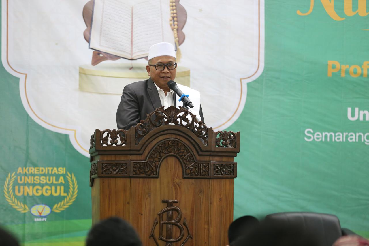 Lebih jauh ia mengingatkan ayat pertama yang diturunkan kepada Nabi Muhammad yaitu terkait pentingnya membaca. Membaca apa yang telah diciptakan Allah (kauniyah), dan apa yang difirmankan Allah di dalam Al Qur’an. “Unissula sebagai kampus yang telah menerapkan membaca Al Qur’an dan sains. Sehingga kampus ini selalu komitmen melahirkan generasi khaira ummah. Generasi terbaik adalah yang mengintegrasikan antara ilmu agama dan sains,” jelasnya.