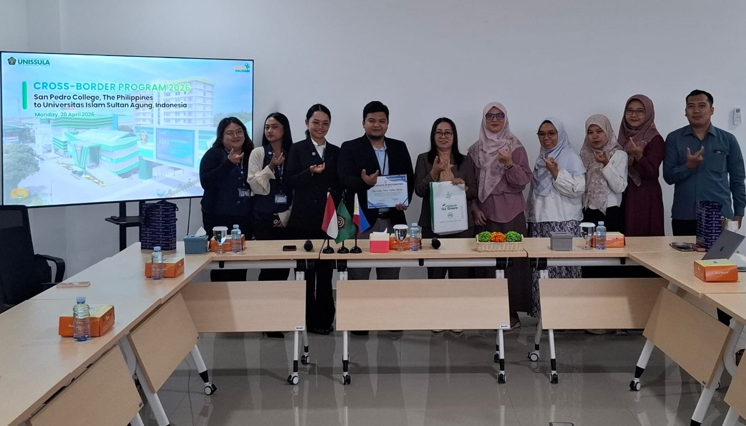 Universitas Islam Sultan Agung (Unissula) menerima kunjungan delegasi San Pedro College (SPC) Filipina dalam program Cross Border Program 2026. Bersama program tersebut juga berlangsung pertukaran dosen, pertukaran mahasiswa, dan praktik mengajar internasional pada 18 – 25 April 2026. Delegasi SPC terdiri atas dosen pembimbing Dr Vivien Grace Jubahib beserta 3 mahasiswa yakni Alyssa Ayad, Shekinah Latiada, dan Eloisa Carta.